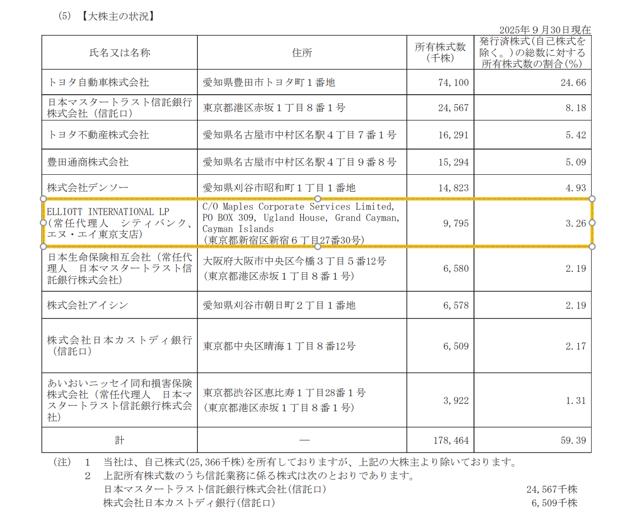 丰田自动织机周二发布的半年报显示,首次亮相十大股东的埃利奥特基金持有979.5万股公司股票,持股比例达到3.26%,成为公司第六大股东。另有知情人士透露,埃利奥特后续进一步增持股票,持股比例已经上升到5%左右。