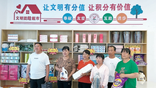 村民在“文明团结超市”兑换奖品。黄然然 摄