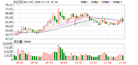 截至11月18日收盘,天亿马报62.3元/股,下跌3.14%;最新总市值为42亿元。